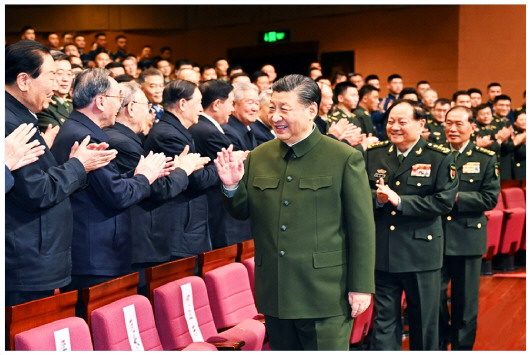 1月29日下午,中央军委慰问驻京部队老干部迎新春文艺演出在京举行。中共中央总书记、国家主席、中央军委主席习近平观看演出,向在座的军队老同志和全军离退休老干部致以节日问候和新春祝福。 □新华社记者 李刚 摄