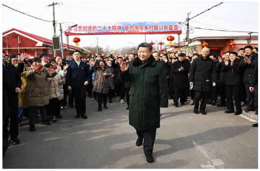 2月1日至2日,中共中央总书记、国家主席、中央军委主席习近平来到天津,看望慰问基层干部群众。这是1日上午,习近平在西青区辛口镇第六埠村考察时,向村民们挥手致意。 □新华社记者谢环驰摄