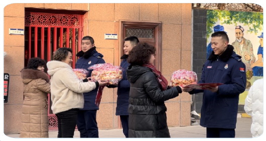 当天,老妈妈服务队队员将春联和糕点送到消防救援人员手中,一盘盘香酥的糕点,一幅幅喜庆的对联,一句句真诚的祝福,都充满着浓浓年味儿,寄托了辞旧迎新、接福纳祥的美好愿望。高昌路消防救援站三级消防士季明宇说:“感谢老妈妈服务队对我们的关心和支持,心里特别温暖。春节期间,我会坚守岗位,保护人民生命财产安全。同时,也祝全市人民新春快乐。”