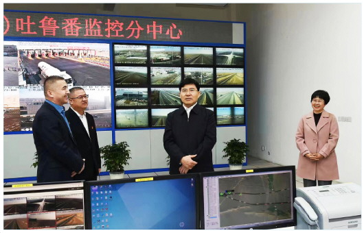 2月10日,农历大年初一,吐鲁番市委书记马学良慰问春节期间在岗人员,向他们表示节日的祝福。图为在吐鲁番公路管理局监控调度中心,马学良书记了解重要路段通行情况。 吐鲁番市融媒体中心记者 刘健 摄