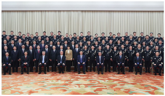 5月28日,党和国家领导人习近平、李强、蔡奇、丁薛祥、李希等在北京人民大会堂会见全国公安工作会议代表。□新华社记者 鞠 鹏摄