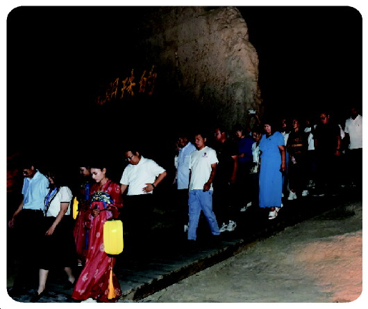 在游览过程中,代表们纷纷被眼前的景象所吸引,不时发出赞叹之声。在实景演出环节,古老的木卡姆与民乐弹唱交织在一起,为参观者呈现了一场视听盛宴。