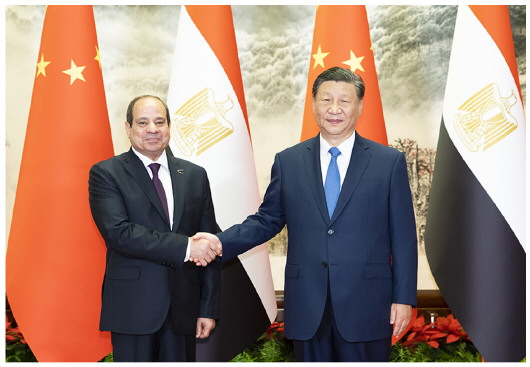 习近平强调,中方支持埃及在国际和地区事务中发挥更大作用,愿同埃方进一步密切在联合国、上海合作组织、金砖国家合作机制等多边平台的协调配合,倡导平等有序的世界多极化和普惠包容的经济全球化,共同维护国际公平正义和发展中国家共同利益。今年是中阿合作论坛成立20周年。中方愿同埃及和其他各方密切沟通合作,建好中阿合作论坛,不断为中阿关系发展注入新动力,推进中阿命运共同体建设。中方也愿同埃及等中非合作论坛非方成员一道,发扬中非友好合作精神,携手构建高水平的中非命运共同体。