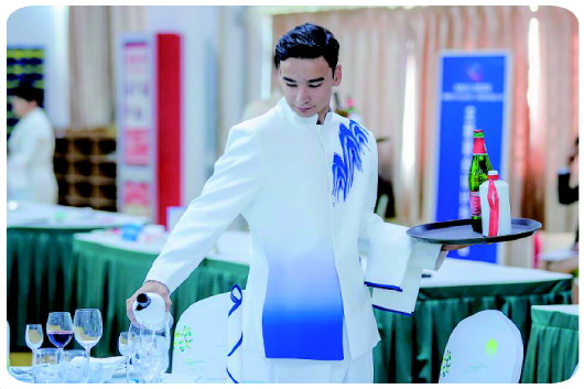 参赛选手参加餐厅服务赛项比赛。