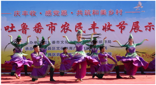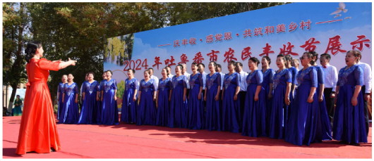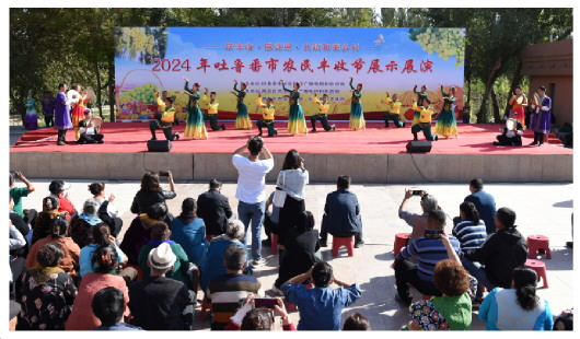10月10日上午,2024年吐鲁番市农民丰收节展示展演活动在高昌区新城西门村举行,文艺汇演、农产品展示、非遗文创产品展示等活动精彩纷呈,吸引了众多群众观看,为秋日的吐鲁番新农村增添了一道亮丽的风景。