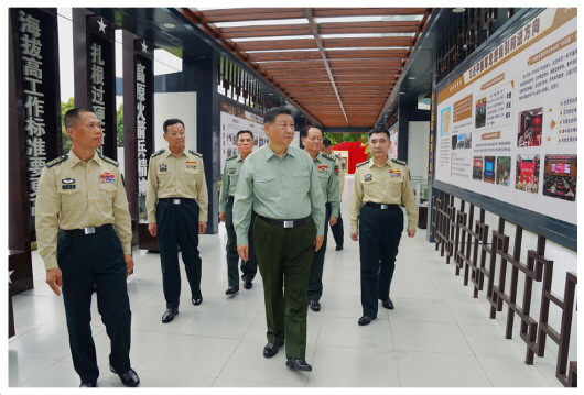 金秋十月,江淮大地山水秀丽、风景如画。上午11时许,习近平来到火箭军某旅,首先察看了该旅军史长廊。该旅是一支有着50多年光荣历史的战略导弹部队。党的十八大以来,该旅在习近平强军思想指引下,坚定举旗铸魂,大抓实战化训练,出色完成一系列重大任务。在反映部队发展历程、新时代全面建设的展板前,习近平详细了解官兵学习党的创新理论、加紧练兵备战、弘扬优良传统等情况。
