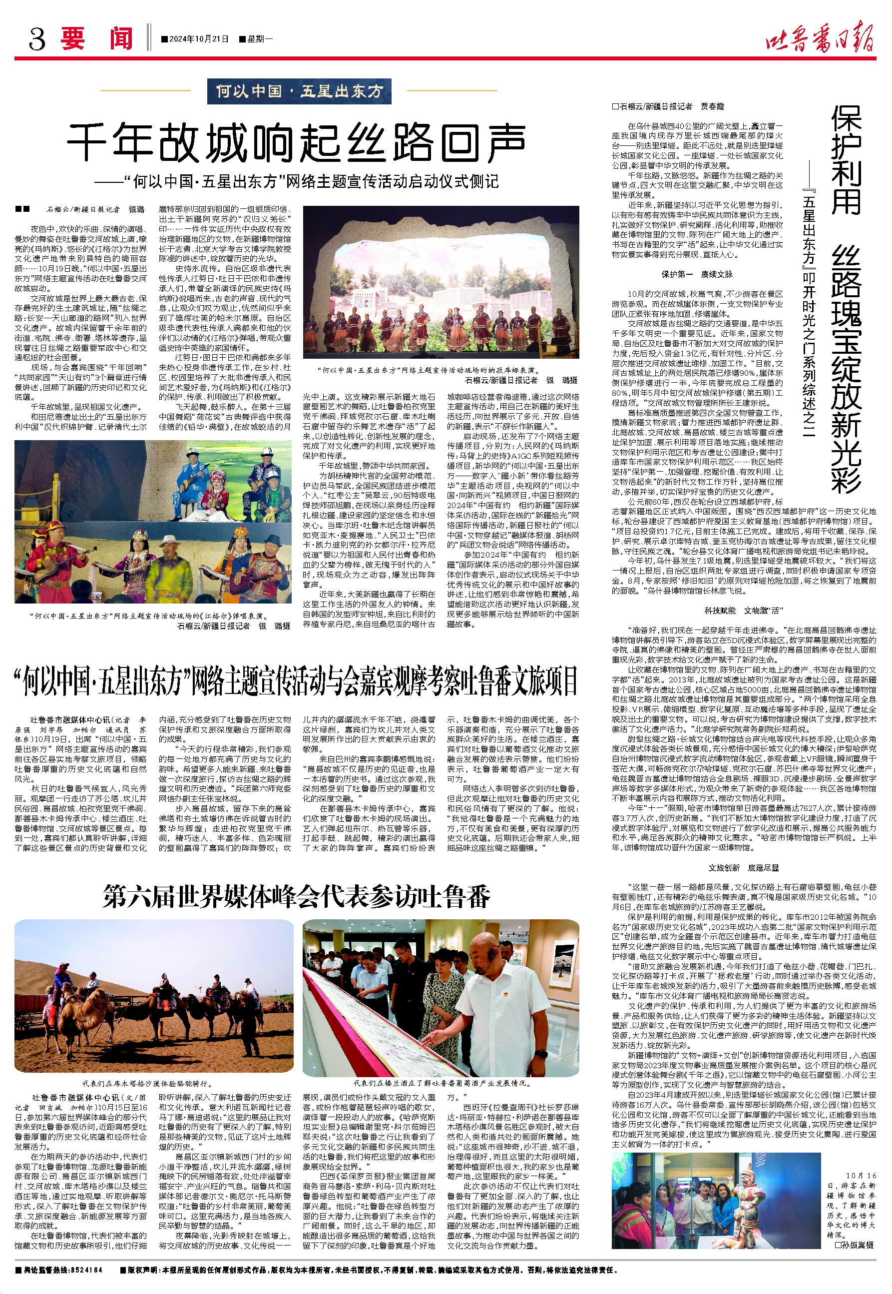吐鲁番市融媒体中心讯(文/图 记者 田吉斌 加帕尔)10月15日至16日,参加第六届世界媒体峰会的部分代表来到吐鲁番参观访问,近距离感受吐鲁番厚重的历史文化底蕴和经济社会发展活力。