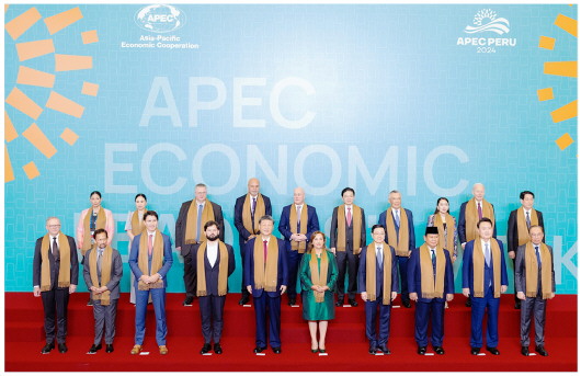 当地时间11月16日上午,亚太经合组织第三十一次领导人非正式会议在秘鲁利马会议中心举行。国家主席习近平出席会议并发表题为《共担时代责任 共促亚太发展》的重要讲话。这是习近平同其他亚太经合组织成员经济体领导人、代表合影。□新华社记者 黄敬文摄