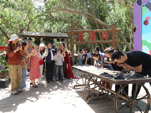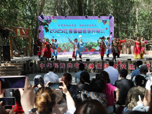 5月4日,“甜蜜之城吐鲁番·满城摇落桑葚雨”2025年吐鲁番桑葚季在葡萄沟景区开幕。这场集吐鲁番历史文化、美食美景、民俗民风等元素为一体的系列文旅活动,吸引了全国各地游客纷至沓来,一同纵享“新疆第一鲜”的独特乐趣。