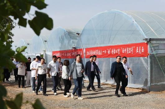 ▼与会代表参观高昌区三堡乡免埋葡萄种植基地。