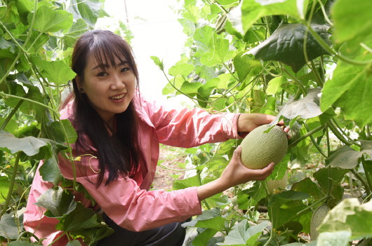 ▲与会代表在高昌区三堡乡哈密瓜种植基地体验采摘乐趣。