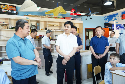 马学良在吐鲁番科技馆调研了解开展群众科学素质提升工程,促进科普和群众生产生活相结合工作开展情况。