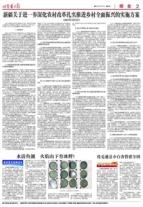 新疆关于进一步深化农村改革扎实推进乡村全面振兴的实施方案