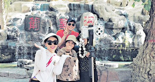 游客在吐鲁番葡萄沟景区拍照打卡。□胡源摄