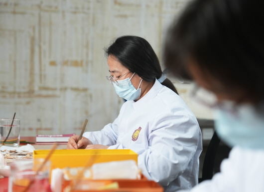 ▲4月30日,吐鲁番学研究院技术保护研究所内文物修复工作者正在工作。 本版图片均由吐鲁番市融媒体中心记者谢懂飞摄