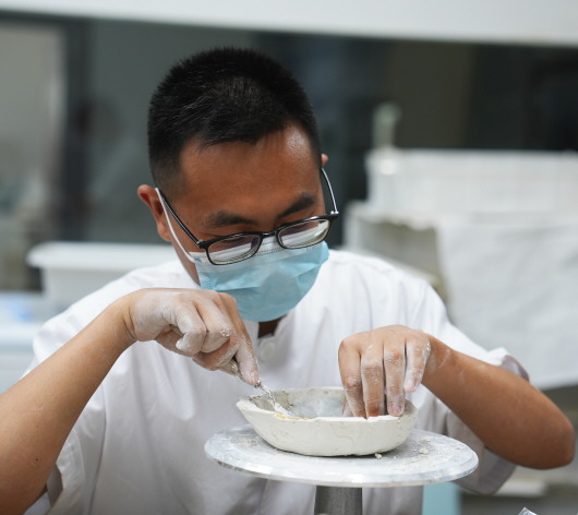4月30日,记者走进吐鲁番学研究院技术保护研究所,看到该所副研究馆员陈玉珍手持细毛刷、镊子,逐层清理文物表面沉积的尘垢,再将破损的陶片精准拼接起来。在她和同事共同努力下,一件件来自吐峪沟石窟的出土文物正经历“重生”。