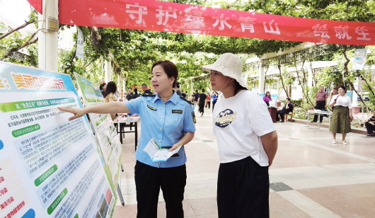 活动现场,工作人员通过设立咨询台、悬挂主题条幅及发放环保手册和可循环布袋等方式,向市民普及垃圾分类、节能减排、绿色出行等知识,并解答环保相关问题。