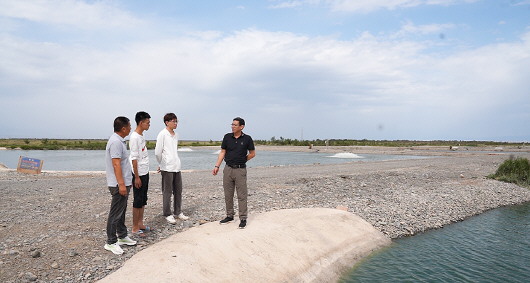 广东海洋大学科研团队在托克逊县夏镇考察金目鲈养殖环境。