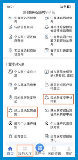 (二)进入【新疆医保服务APP】→【服务大厅】→【业务办理】→【异地就医备案登记】