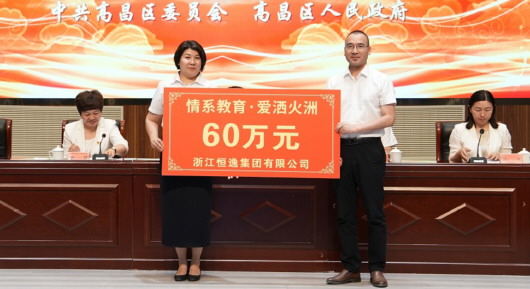 浙江恒逸集团有限公司向高昌区捐赠“情系教育·爱洒火洲”尊师重教公益资金60万元。 吐鲁番市融媒体中心通讯员 王正文 摄