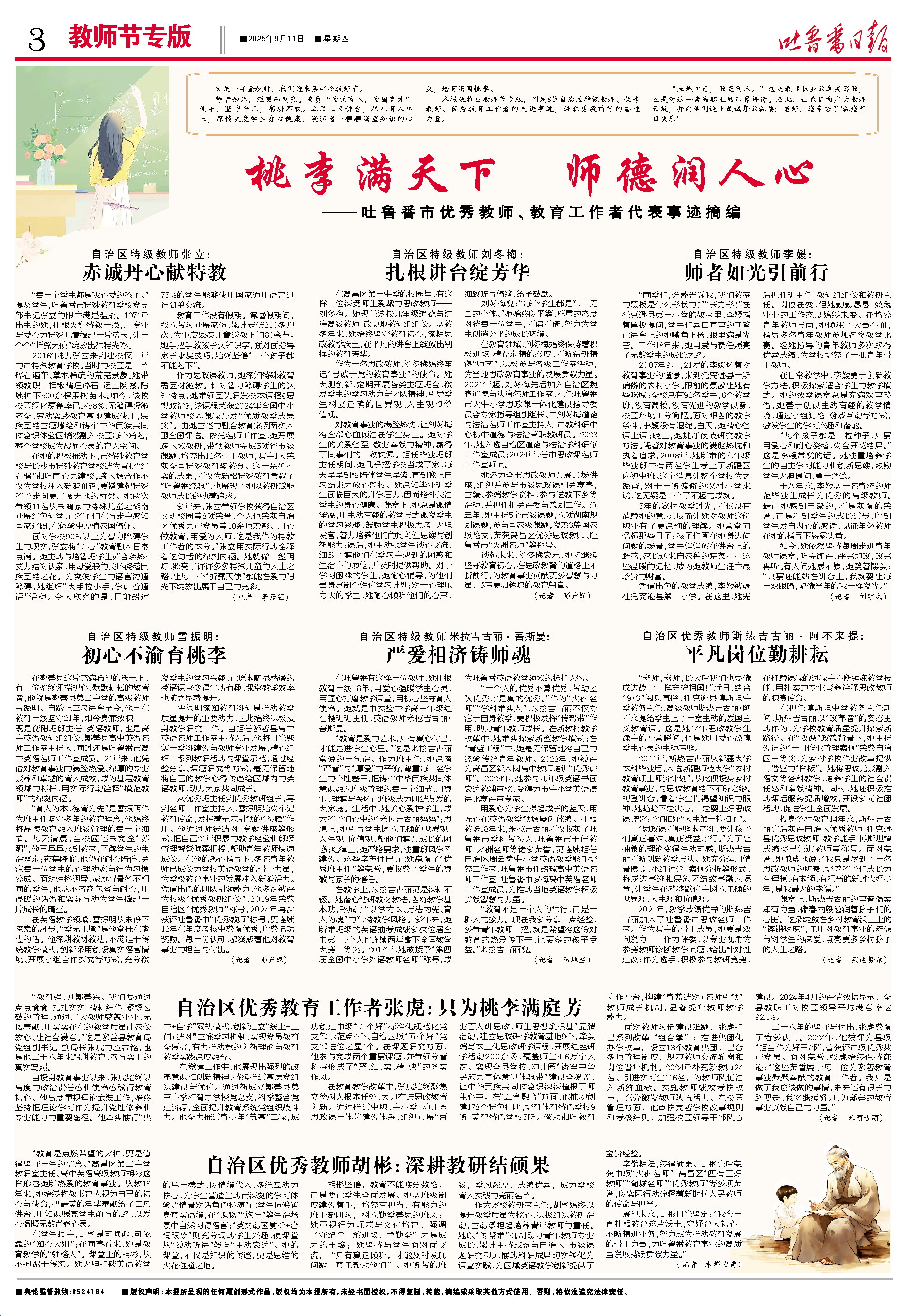 ——吐鲁番市优秀教师、教育工作者代表事迹摘编