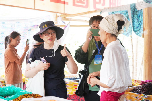 游客点赞吐鲁番的葡萄干。