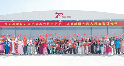 9月23日,习近平总书记率中央代表团抵达乌鲁木齐,出席新疆维吾尔自治区成立70周年庆祝活动,让新疆各族群众沉浸在无尽的幸福与温暖之中。 亲切关怀指引前进方向,巨大鼓舞激发奋进力量。新疆各族干部群众深深感动于习近平总书记对这片土地的深情牵挂,感恩总书记,表示将牢记嘱托,完整准确全面贯彻新时代党的治疆方略,努力建设团结和谐、繁荣富裕、文明进步、安居乐业、生态良好的美丽新疆,为强国建设、民族复兴作出新的更大贡献。