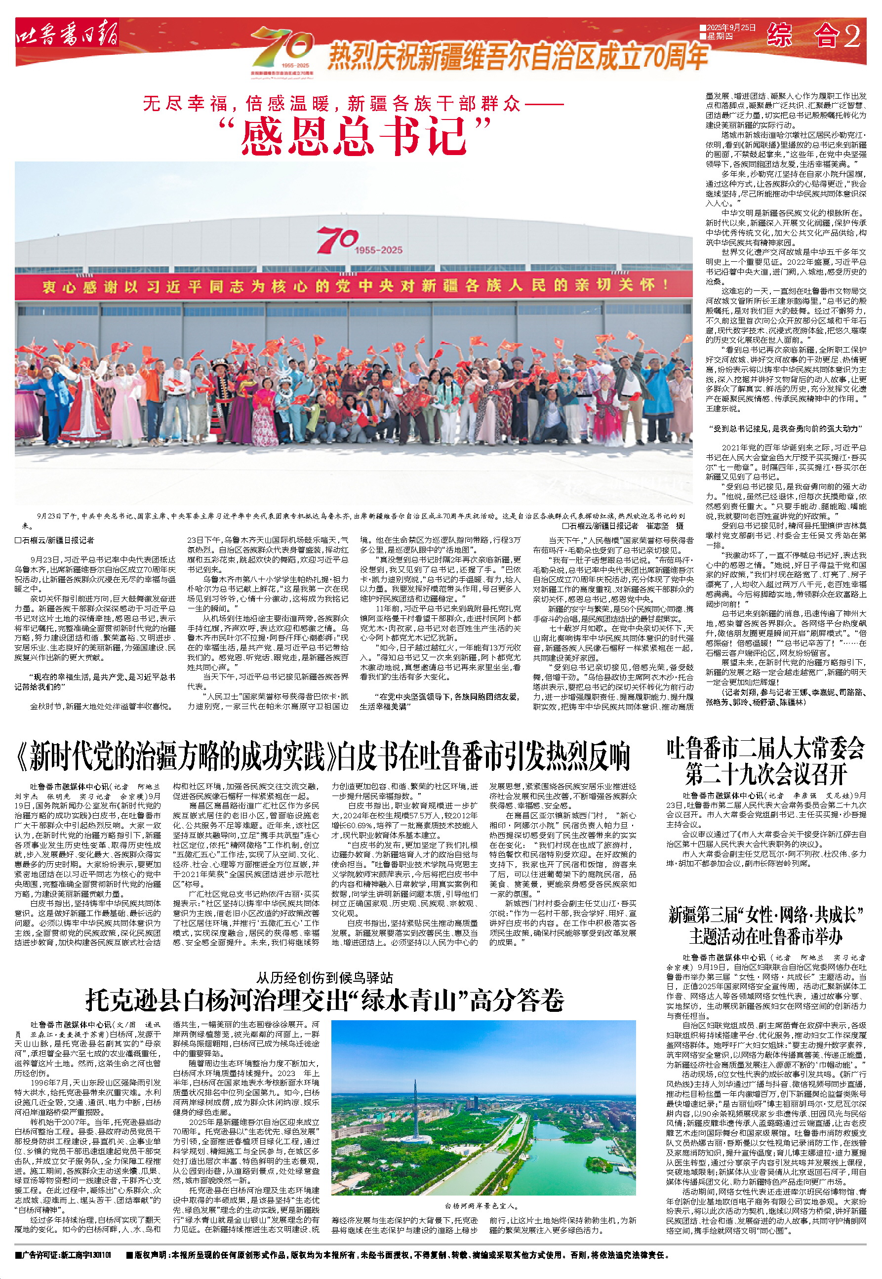吐鲁番市融媒体中心讯(记者 阿地兰 刘宇杰 张明先 实习记者 余宗璞)9月19日,国务院新闻办公室发布《新时代党的治疆方略的成功实践》白皮书,在吐鲁番市广大干部群众中引起热烈反响。大家一致认为,在新时代党的治疆方略指引下,新疆各项事业发生历史性变革、取得历史性成就,步入发展最好、变化最大、各族群众得实惠最多的历史时期。大家纷纷表示,要更加紧密地团结在以习近平同志为核心的党中央周围,完整准确全面贯彻新时代党的治疆方略,为建设美丽新疆贡献力量。