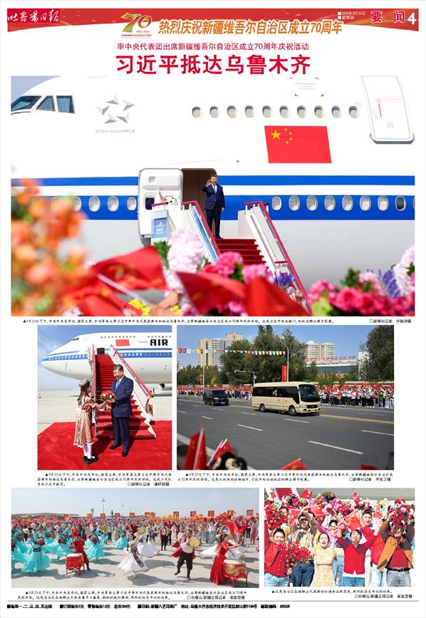 ·01 习近平率中央代表团抵达乌鲁木齐出席新疆维吾尔自治区成立70周年庆祝活动