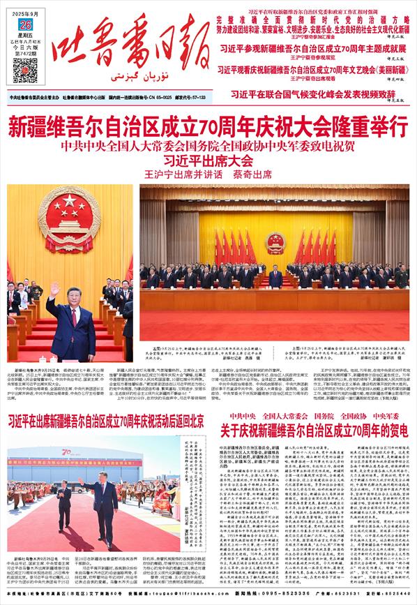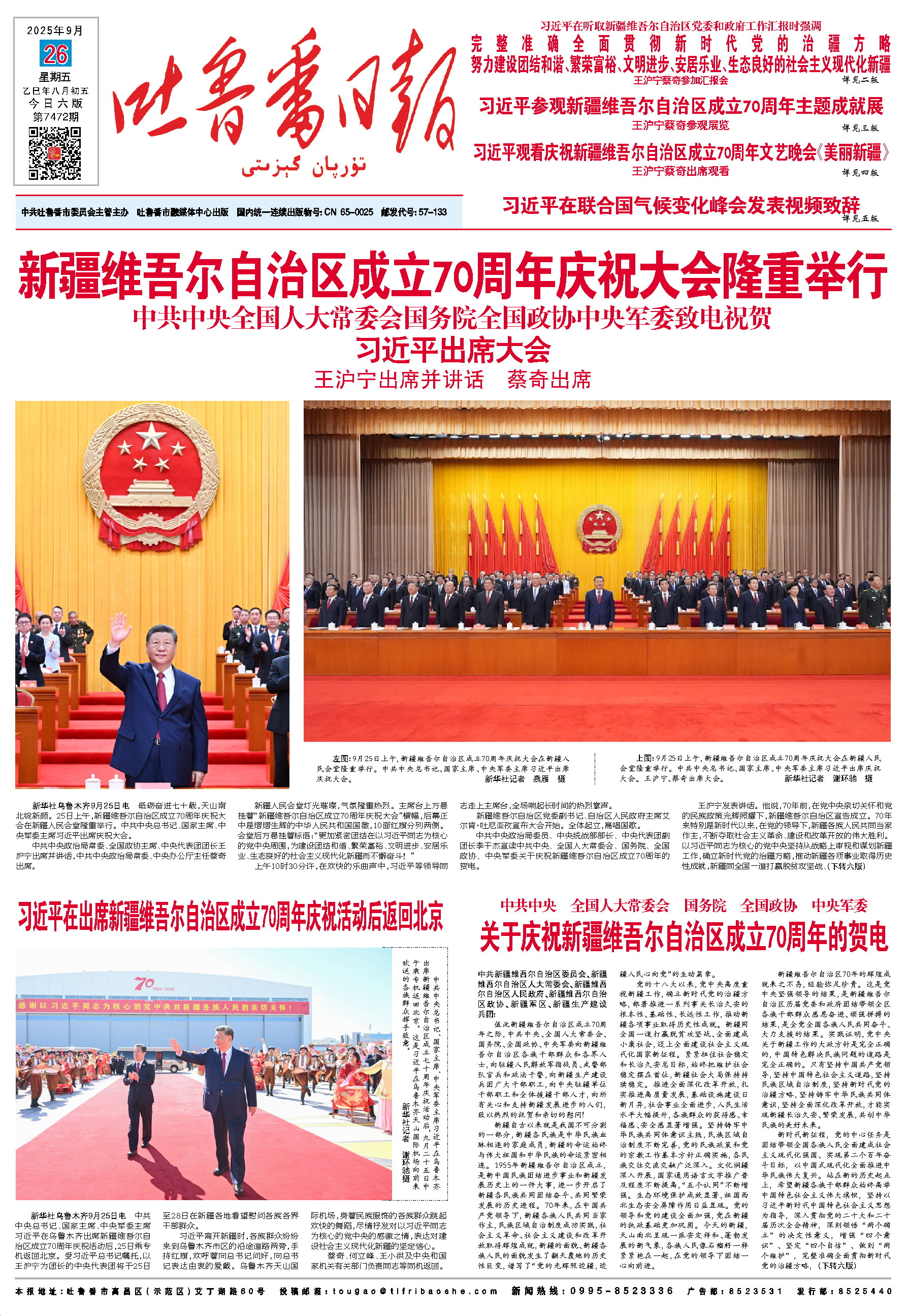 新华社乌鲁木齐9月25日电 中共中央总书记、国家主席、中央军委主席习近平在乌鲁木齐出席新疆维吾尔自治区成立70周年庆祝活动后,25日乘专机返回北京。受习近平总书记嘱托,以王沪宁为团长的中央代表团将于25日至28日在新疆各地看望慰问各族各界干部群众。