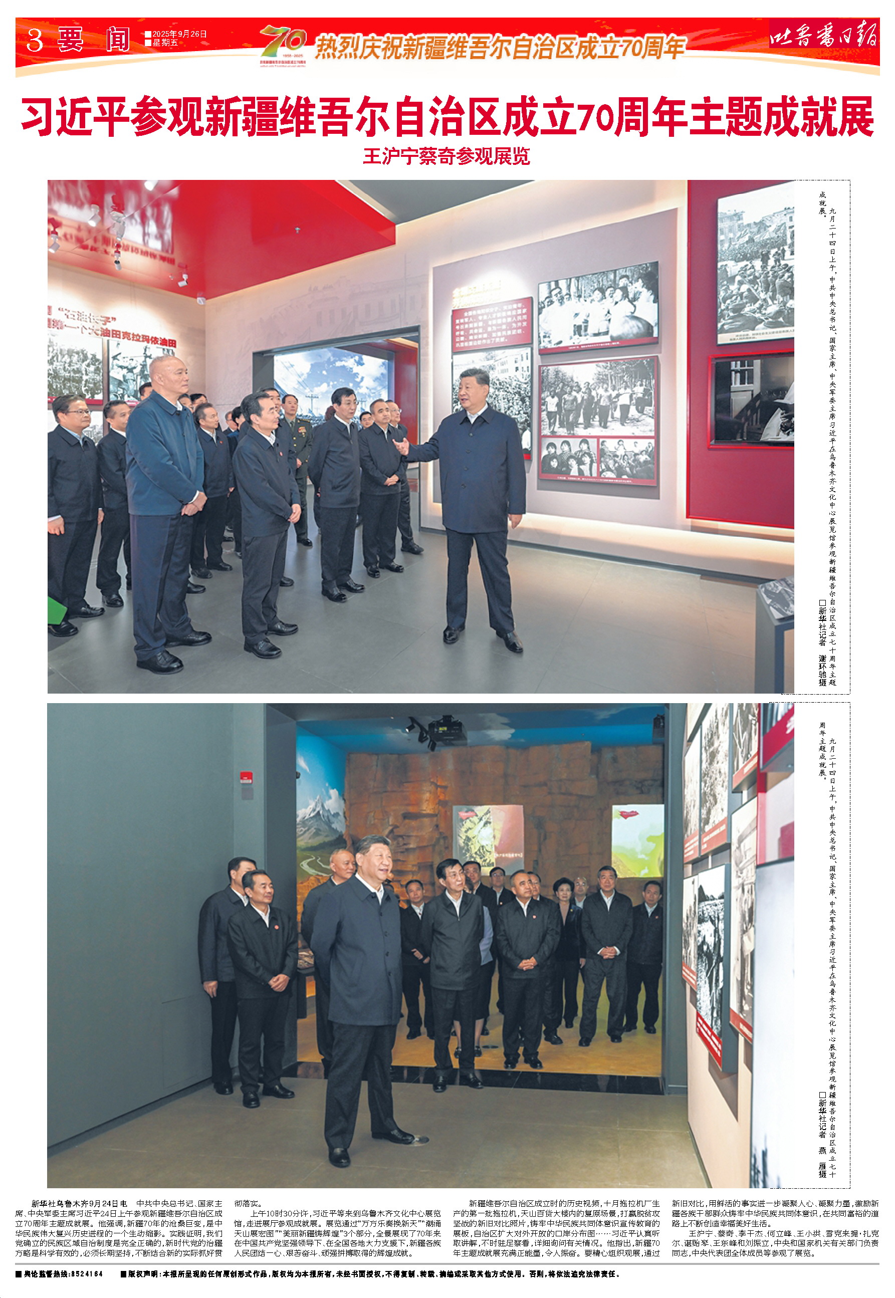 习近平参观新疆维吾尔自治区成立70周年主题成就展