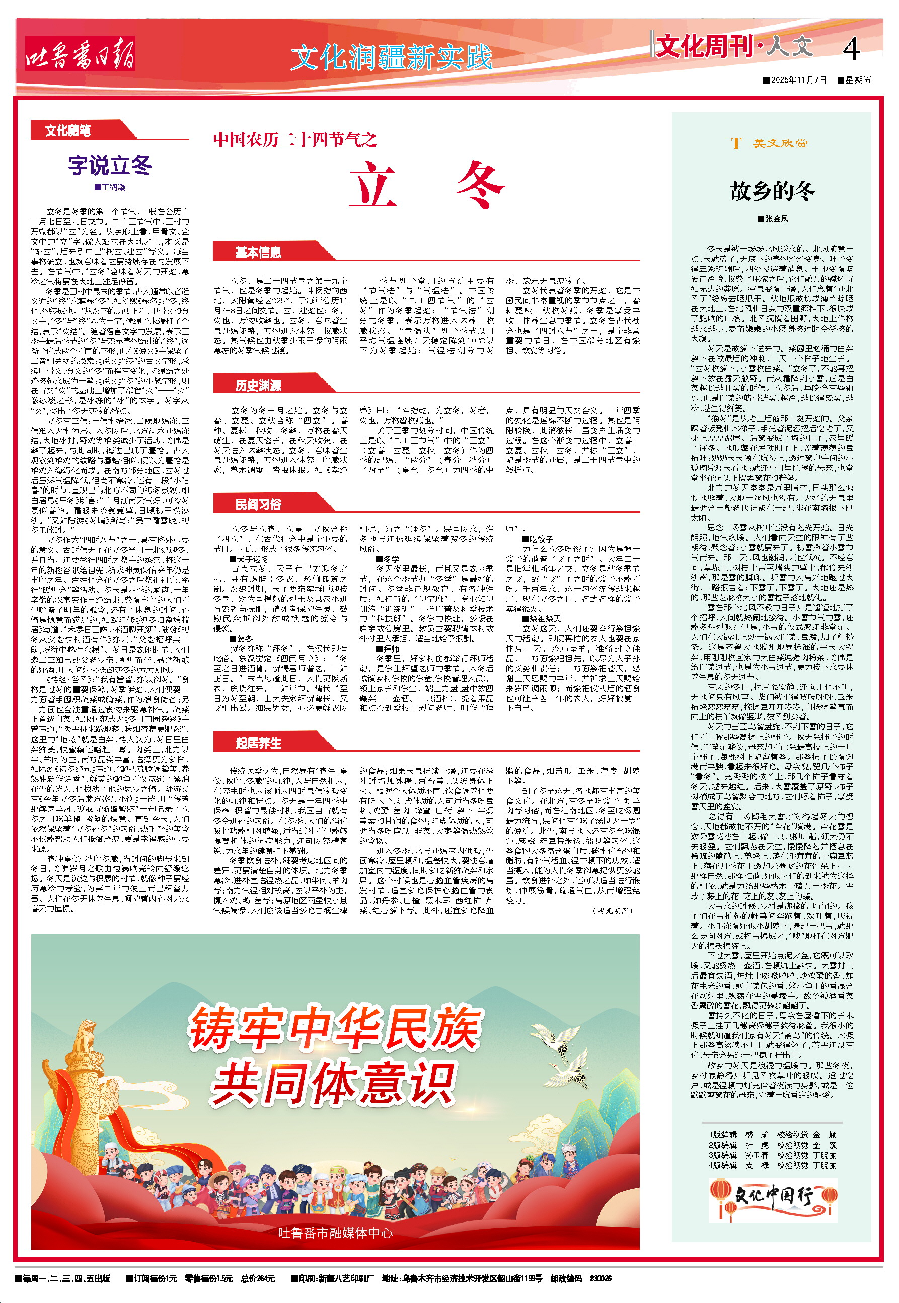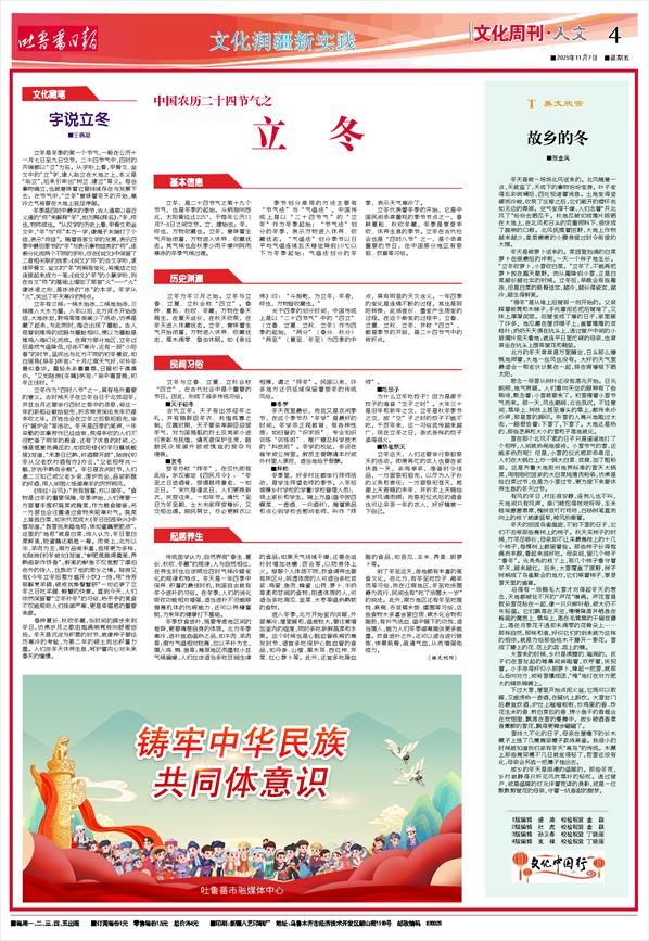 春种夏长、秋收冬藏,当时间的脚步来到冬日,仿佛岁月之歌由饱满响亮转向舒缓悠扬。冬天是沉淀与积累的时节,就像种子要经历寒冷的考验,为第二年的破土而出积蓄力量。人们在冬天休养生息,呵护着内心对未来春天的憧憬。