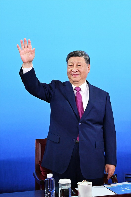 11月9日晚,中共中央总书记、国家主席、中央军委主席习近平在广东省广州市出席中华人民共和国第十五届运动会开幕式并宣布运动会开幕。这是习近平在主席台上向大家挥手致意。□新华社记者燕雁摄