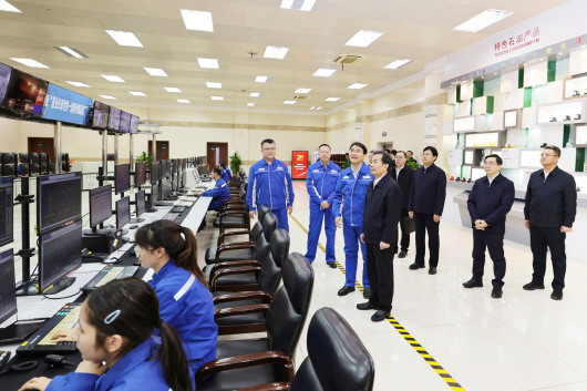 11月19日至20日,自治区党委书记陈小江在克拉玛依调研。这是陈小江在中石油克拉玛依石化有限责任公司,详细了解原油炼化加工情况。□石榴云/新疆日报记者 崔志坚摄