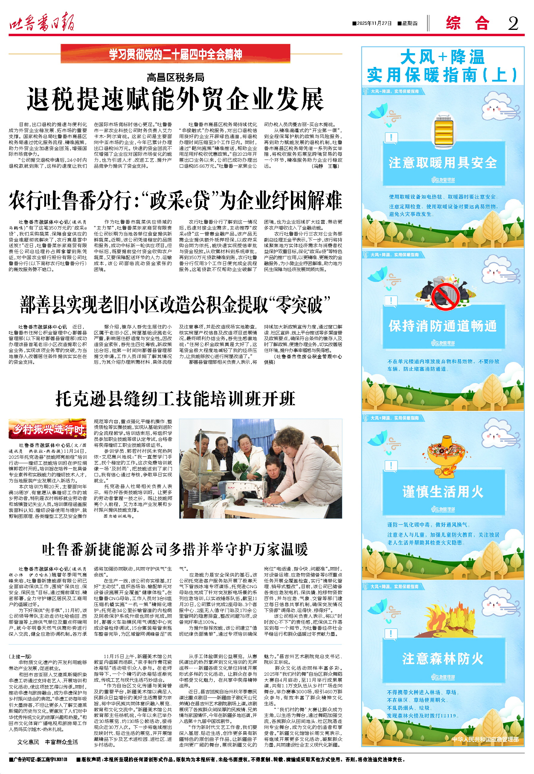 吐鲁番新捷能源公司多措并举守护万家温暖