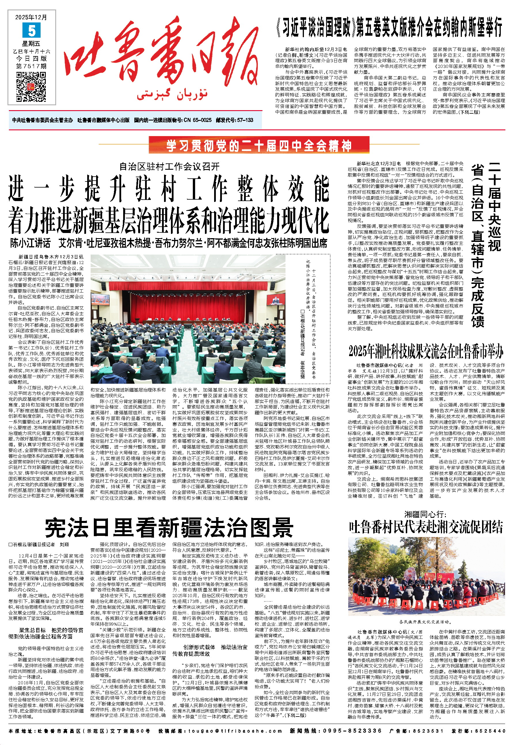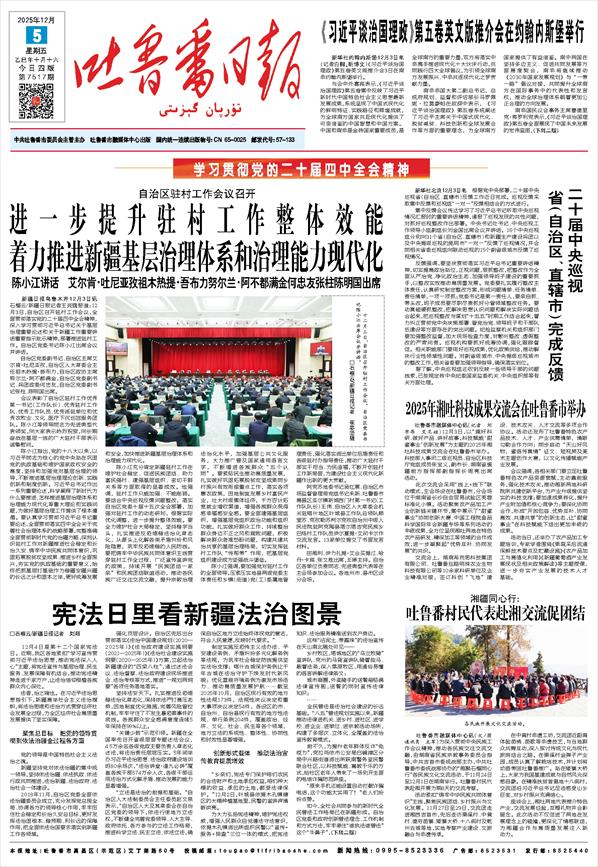 新疆日报乌鲁木齐12月3日讯 石榴云/新疆日报记者王兴瑞报道:12月3日,自治区召开驻村工作会议,全面贯彻落实党的二十届四中全会精神,深入学习贯彻习近平总书记关于基层治理重要论述和关于新疆工作重要讲话重要指示批示精神,部署推进驻村工作。自治区党委书记陈小江出席会议并讲话。 自治区党委副书记、自治区主席艾尔肯·吐尼亚孜,自治区人大常委会主任祖木热提·吾布力,自治区政协主席努尔兰·阿不都满金,自治区党委副书记、兵团政委何忠友,自治区党委副书记张柱、陈明国出席。 会议表彰了自治区驻村工作优秀第一书记(工作队长)、优秀驻村工作队、优秀工作队员、优秀派驻单位和优秀农牧业、文化、医疗下沉巡回服务团队。陈小江等领导同志为先进典型代表颁奖,向大家表示热烈祝贺,向长期奋战在基层一线的广大驻村干部表示诚挚慰问。 陈小江指出,党的十八大以来,以习近平同志为核心的党中央站在巩固党的执政基础和维护国家政权安全的高度,坚持和加强党对基层治理的领导,不断推进基层治理理论创新、实践创新和制度创新。习近平总书记作出一系列重要论述,科学阐释了新时代为什么要推进、怎样推进基层治理体系和治理能力现代化等重大理论和实践问题,为做好基层治理工作提供了根本遵循。要认真学习贯彻习近平总书记重要论述,全面贯彻落实四中全会关于完善社会治理体系的战略部署,完整准确全面贯彻新时代党的治疆方略,深刻认识驻村工作对新疆推进社会稳定和长治久安、铸牢中华民族共同体意识,巩固拓展脱贫攻坚成果、推进乡村全面振兴,夯实党的执政基础的重要意义,始终把抓基层打基础作为稳疆安疆兴疆的长远之计和固本之举,更好统筹发展和安全,加快推进新疆基层治理体系和治理能力现代化。 陈小江充分肯定新疆驻村工作在维护社会稳定、促进民族团结、助力富民强村、建强基层组织、密切干群关系等方面取得的显著成效。他强调,驻村工作只能加强、不能削弱。要结合中央巡视反馈问题整改,落实自治区党委十届十五次全会部署,加强对驻村工作的动态研判,根据实际优化调整,进一步提升整体效能。要全力维护社会大局稳定,坚持稳字当头,扎实推进反恐维稳法治化常态化,从源头上化解各类矛盾纠纷和风险隐患,筑牢反恐维稳的人民防线。要把铸牢中华民族共同体意识主线贯穿驻村工作全过程,广泛宣传宣讲党的政策,持续开展“民族团结一家亲”和民族团结联谊活动,推动各民族广泛交往交流交融,提升宗教治理法治化水平,加强基层公共文化服务,大力推广普及国家通用语言文字,不断增进各族群众“五个认同”。要紧贴民生推动高质量发展,扎实做好巩固拓展脱贫攻坚成果同乡村振兴有效衔接重点工作,落实各项惠农政策,因地制宜发展乡村富民产业,壮大村级集体经济,千方百计拓宽就业增收渠道,增强各族群众获得感幸福感安全感。要全面建强基层组织,增强基层党组织政治功能和组织功能,扎实做好群众工作,持续整治群众身边不正之风和腐败问题,积极解决群众急难愁盼问题,构建共建共治共享的基层治理格局,切实发挥驻村工作队“传帮带”作用,把基层党组织建设成为坚强战斗堡垒。 陈小江强调,要加强党对驻村工作的全面领导,压紧压实地县两级党委主体责任和乡镇(街道)党(工)委属地管理责任,强化落实派出单位后盾责任和各级驻村办指导责任,推动广大驻村干部实干担当、为民造福,不断开创驻村工作新局面,为建设社会主义现代化新疆作出新的更大贡献。 阿克苏地委书记吴红展、自治区市场监督管理局党组书记朱新、吐鲁番市高昌区亚尔镇新城西门村第一书记(工作队队长)王伟、自治区人大常委会机关驻喀什地区叶城县工作队总领队顾莹苏、克孜勒苏柯尔克孜自治州中级人民法院驻阿克陶县塔尔塔吉克民族乡巴格村工作队员伊尔夏提·艾司卡尔作交流发言。13家单位提交了书面发言材料。 田湘利、伊力扎提·艾合买提江、哈丹·卡宾、张文胜出席,王琳主持。自治区各单位负责同志、先进典型代表等在主会场参加会议。各地州市、县市区设分会场。