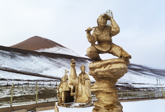 图1 :火焰山银装素裹,分外妖娆。 吐鲁番市融媒体中心记者 刘健摄