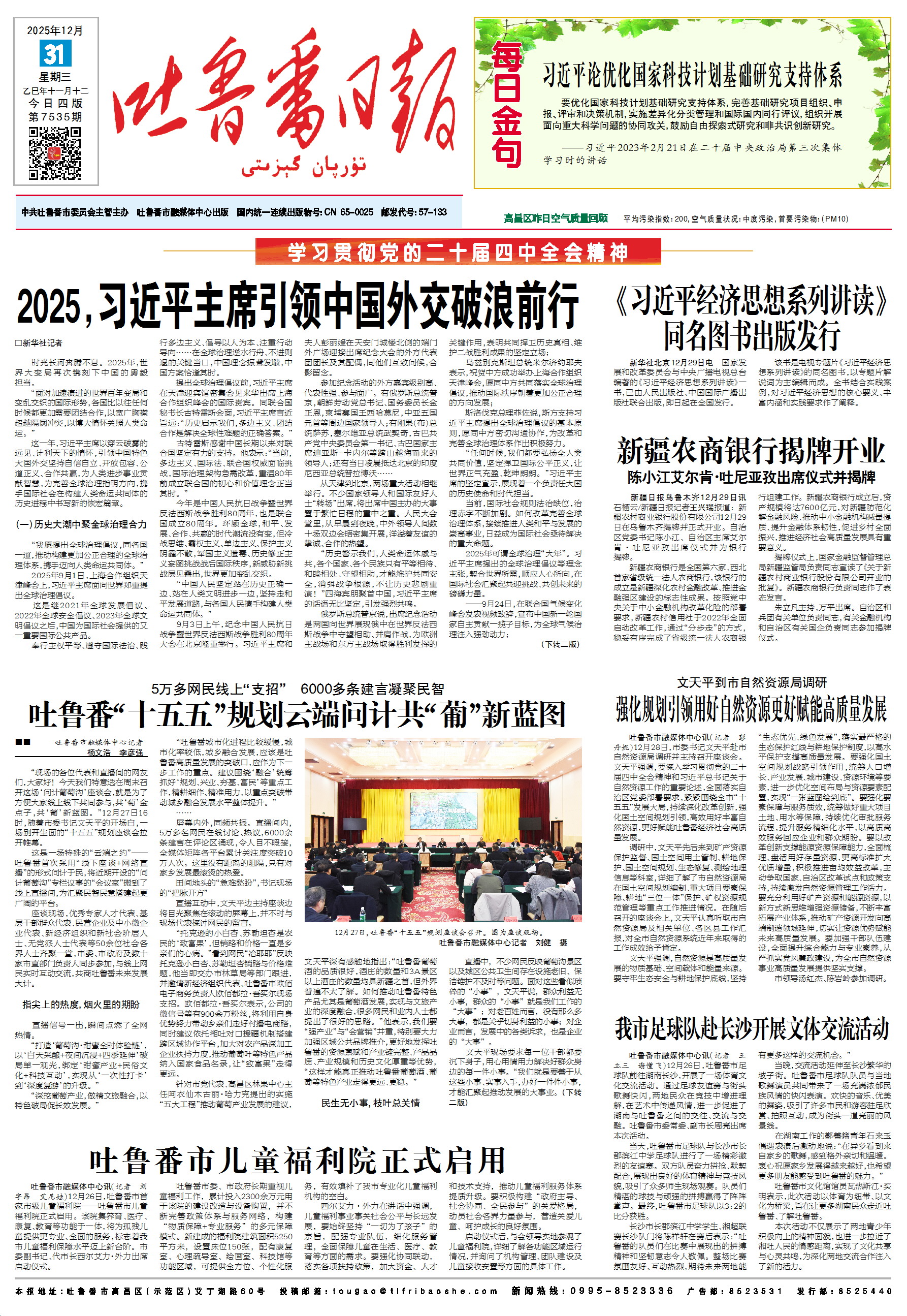 时间:2025年12月31日 来源:吐鲁番日报