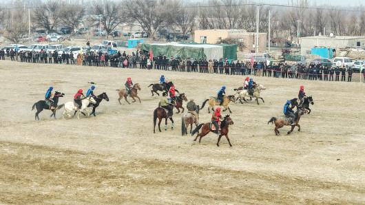 ▲激烈的叼羊比赛。 本版图片均由吐鲁番市融媒体中心特约通讯员李靖海、通讯员胡国凯摄