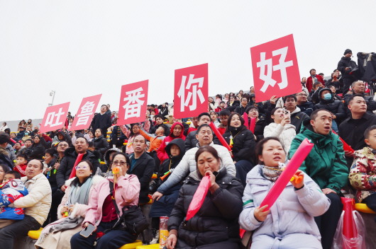 ◤十二月二十一日,湘西州的球迷举起“吐鲁番你好”的牌子,欢迎吐鲁番市足球队。 吐鲁番市融媒体中心记者 王立三 摄