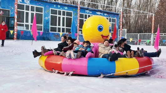 游客在“火洲小三亚”冰雪世界体验“八爪鱼转转”项目。