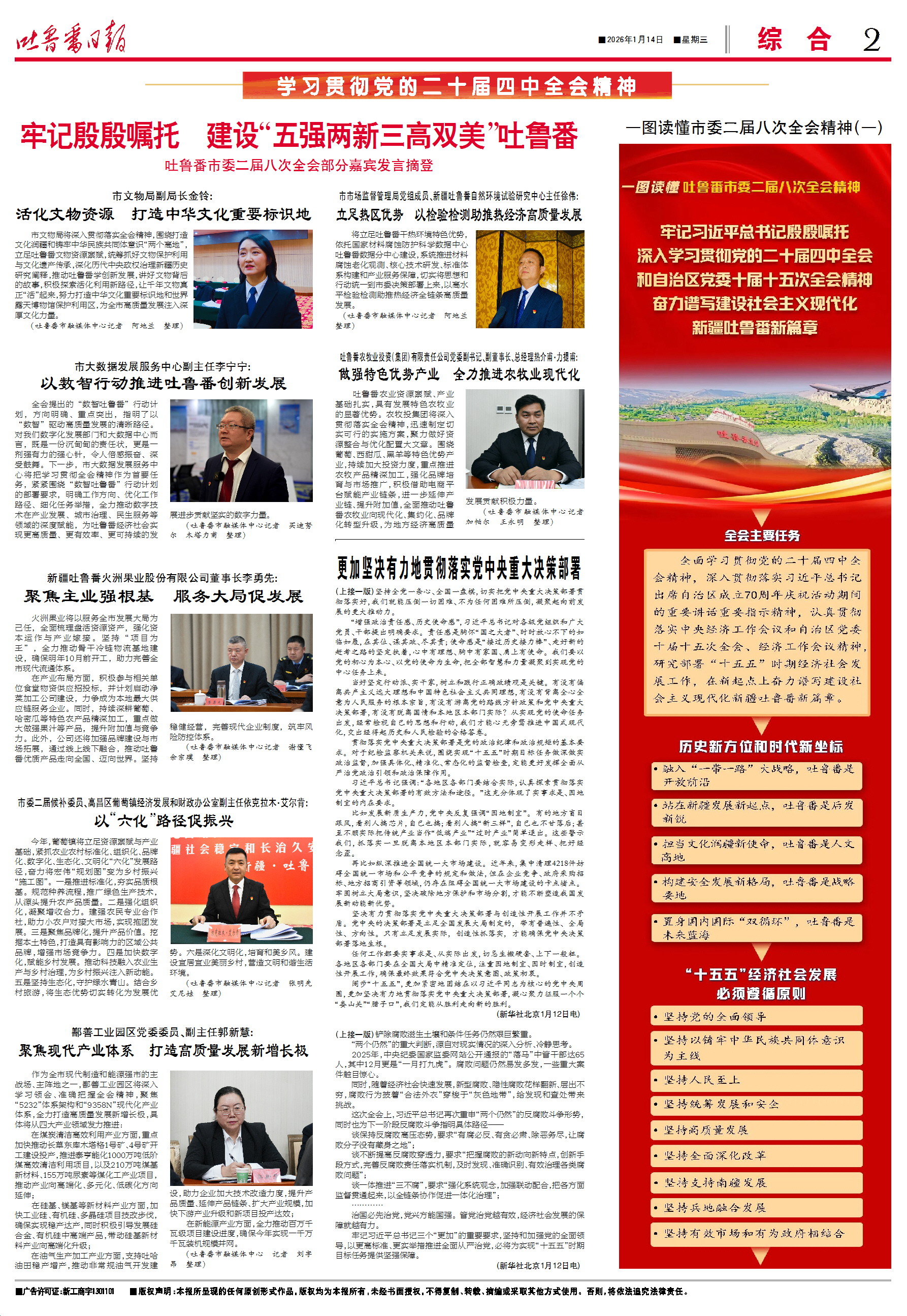 全会提出的“数智吐鲁番”行动计划,方向明确、重点突出,指明了以“数智”驱动高质量发展的清晰路径。对我们数字化发展部门和大数据中心而言,既是一份沉甸甸的责任状,更是一剂强有力的强心针,令人倍感振奋、深受鼓舞。下一步,市大数据发展服务中心将把学习贯彻全会精神作为首要任务,紧紧围绕“数智吐鲁番”行动计划的部署要求,明确工作方向、优化工作路径、细化任务举措,全力推动数字技术在产业发展、城市治理、民生服务等领域的深度赋能,为吐鲁番经济社会实现更高质量、更有效率、更可持续的发展进步贡献坚实的数字力量。