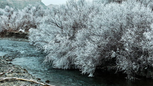 雾 凇 一身盛装,宛如梨花绽放于枝头, 洁白,净化了世界;纯净,抚慰了心灵, 跟着一溪水流,让北方的冬日走进神话。