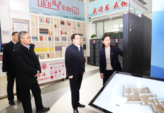 在市图书馆,文天平详细了解数字化服务与资源建设等情况。