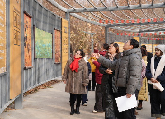 吐鲁番市融媒体中心讯(记者 刘字昂 艾尼娃)1月13日,在高昌区旅游文化广场,一座全新打造的中华文化符号和中华民族形象示范点正式与市民见面。诗词书画与节气民俗交相辉映,湖湘文化与本地风情互鉴交融,吸引众多群众驻足参观,在可感可知的氛围中体悟中华文明的博大精深。