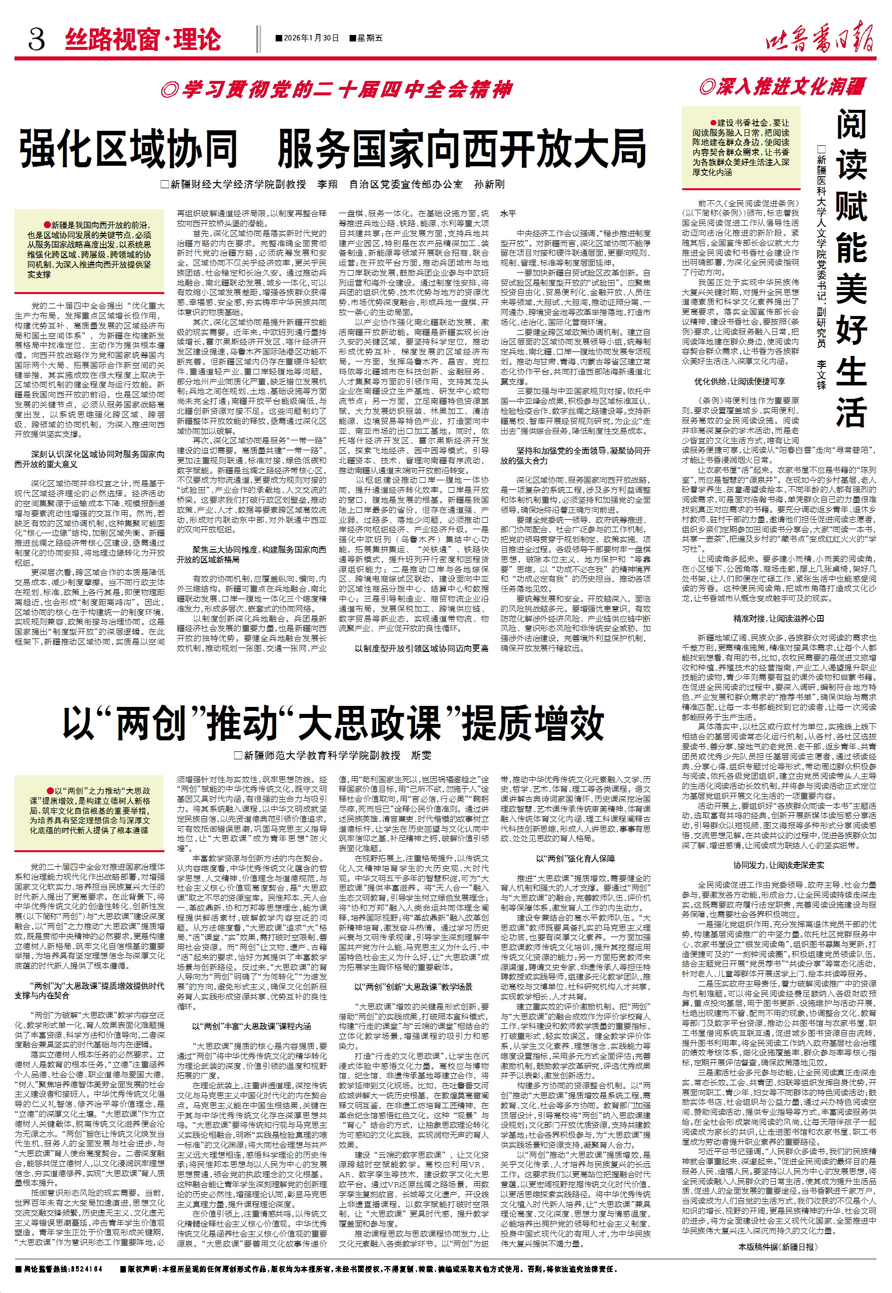 □新疆财经大学经济学院副教授 李翔 自治区党委宣传部办公室 孙新刚