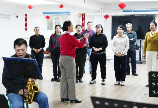 广场社区的艺术团在排练节目。 吐鲁番市融媒体中心记者 刘字昂 摄