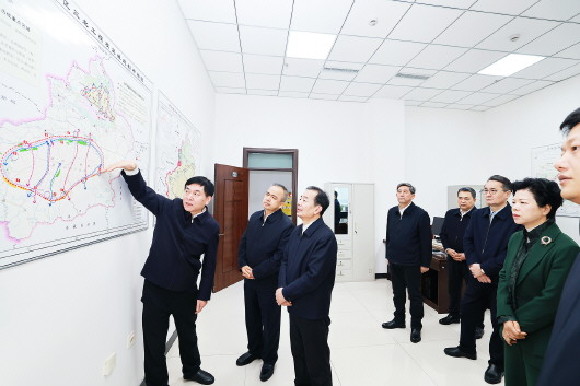 2月5日,自治区党委书记陈小江、自治区主席艾尔肯·吐尼亚孜在自治区水利厅和自治区林草局调研并座谈。这是陈小江、艾尔肯·吐尼亚孜在自治区林草局,深入了解“三北”工程推进情况。 □石榴云/新疆日报记者崔志坚摄