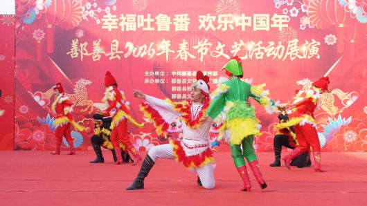 吐鲁番市融媒体中心(文/图 通讯员 沙宣 张天宇)春节临近,年味正浓。连日来,鄯善县举办以“幸福吐鲁番 欢乐中国年”为主题的年货大集与2026年春节文艺展演活动,各族群众逛集市、办年货、赏节目,沉浸在热闹喜庆的迎春氛围中。