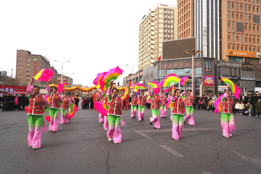 ▲秧歌队在街头巡游表演。 吐鲁番市融媒体中心记者 买迪努尔 摄